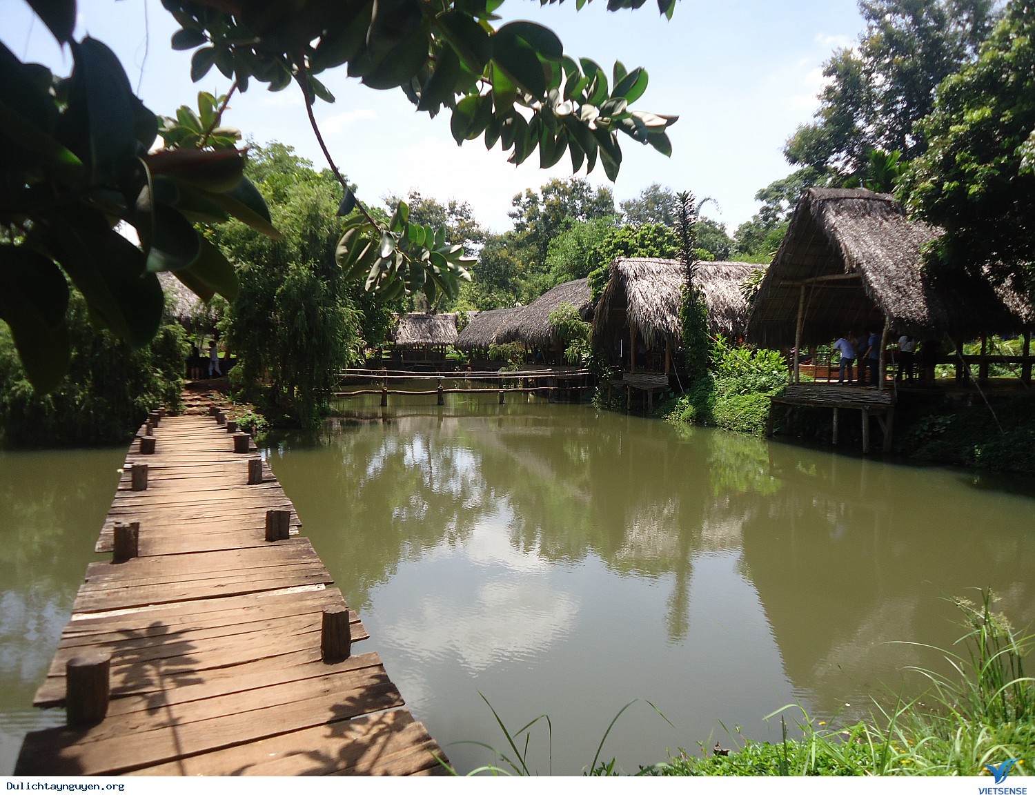 Prominent in this village is the old Ama H’Rin, who once led the villages to clear the flower forest and founded the famous Ako Dhong village. The village elder’s house is considered the soul of the village, and when looking at the village, people will also remember the legendary chief of the village. Following the gentle slopes leading to the end of the village, visitors will be walking under the rows of green trees. The slope’s end is a large lake with clear water and a wooden bridge spanning the cool thatched hut.