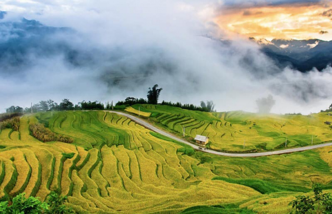However, according to the experience of many visitors, if the weather forecast today is rainy, tomorrow is sunny, then surely "tomorrow" will have beautiful clouds. If you want to see the ripe golden rice fields, the end of September is the most suitable time, the beautiful scenery in Hang Da village will definitely make you unable to take your eyes off.