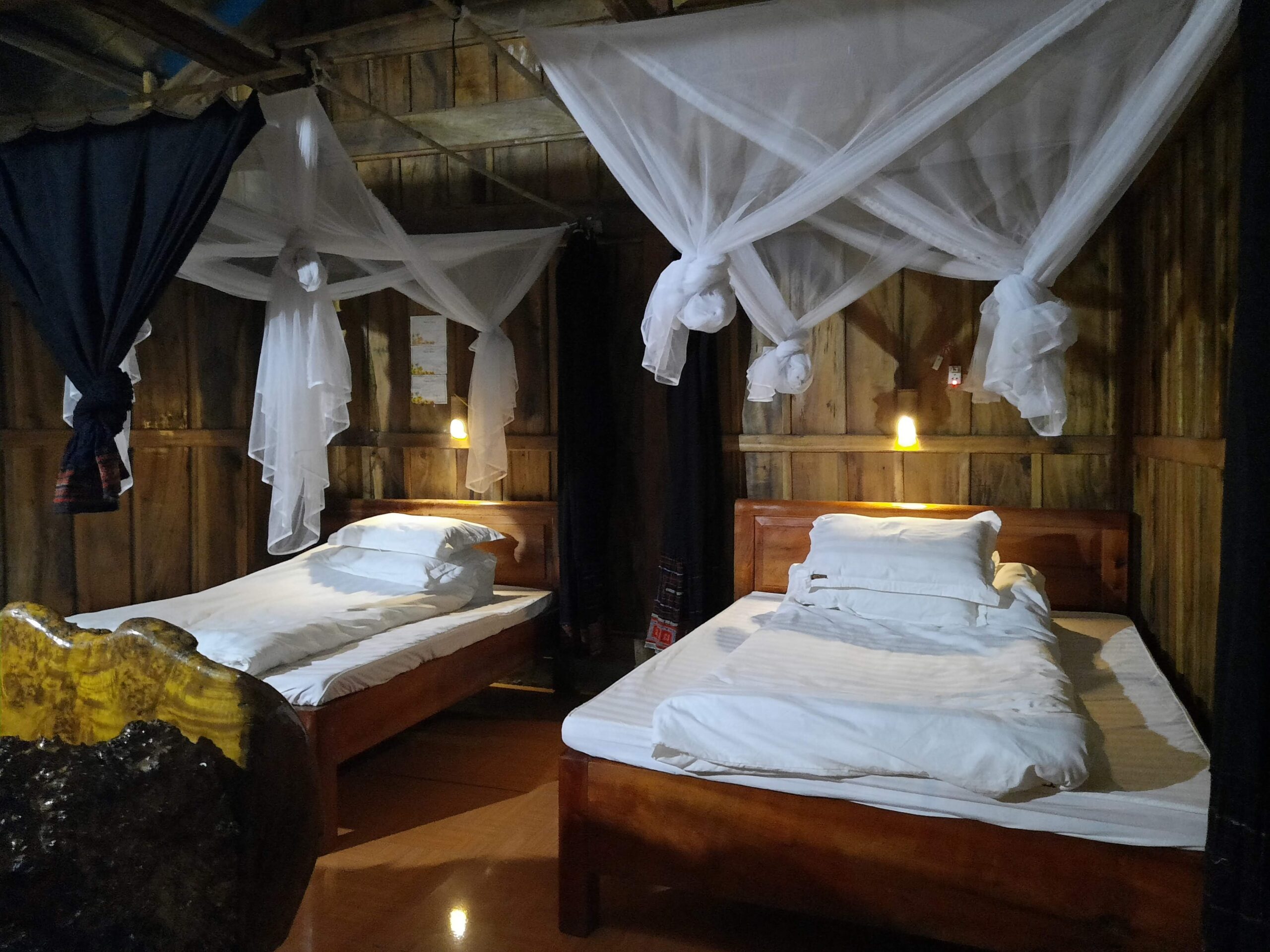 Currently, the village has almost 20 households working as suitable Homestays and restaurants. These can host up to 300 guests per night, comfortably. Each has about 8 to 12 beds, including between 1 and 3 closed bedrooms (bungalows). The bird’s nest area has 6 private tree houses which accommodate 2 people per room. There are also 3 bungalows located in the Heart cooperative compound area which has a cosy 22 cushion dorm style bedroom with a restaurant. Below are the names of the individual homestays you will be able to stay at;