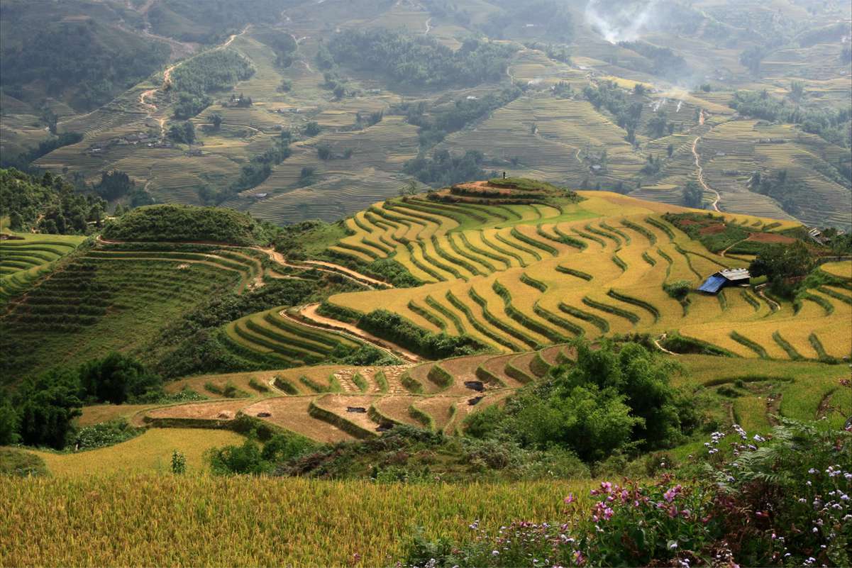 Ta Van Village owns immense paddy fields on the hill slopes, rustic thatched houses of the ethnic minorities and narrow dirt roads with colorful flowers on the two sides. All the things combine with others to draw a stunning picture in a mountainous area.