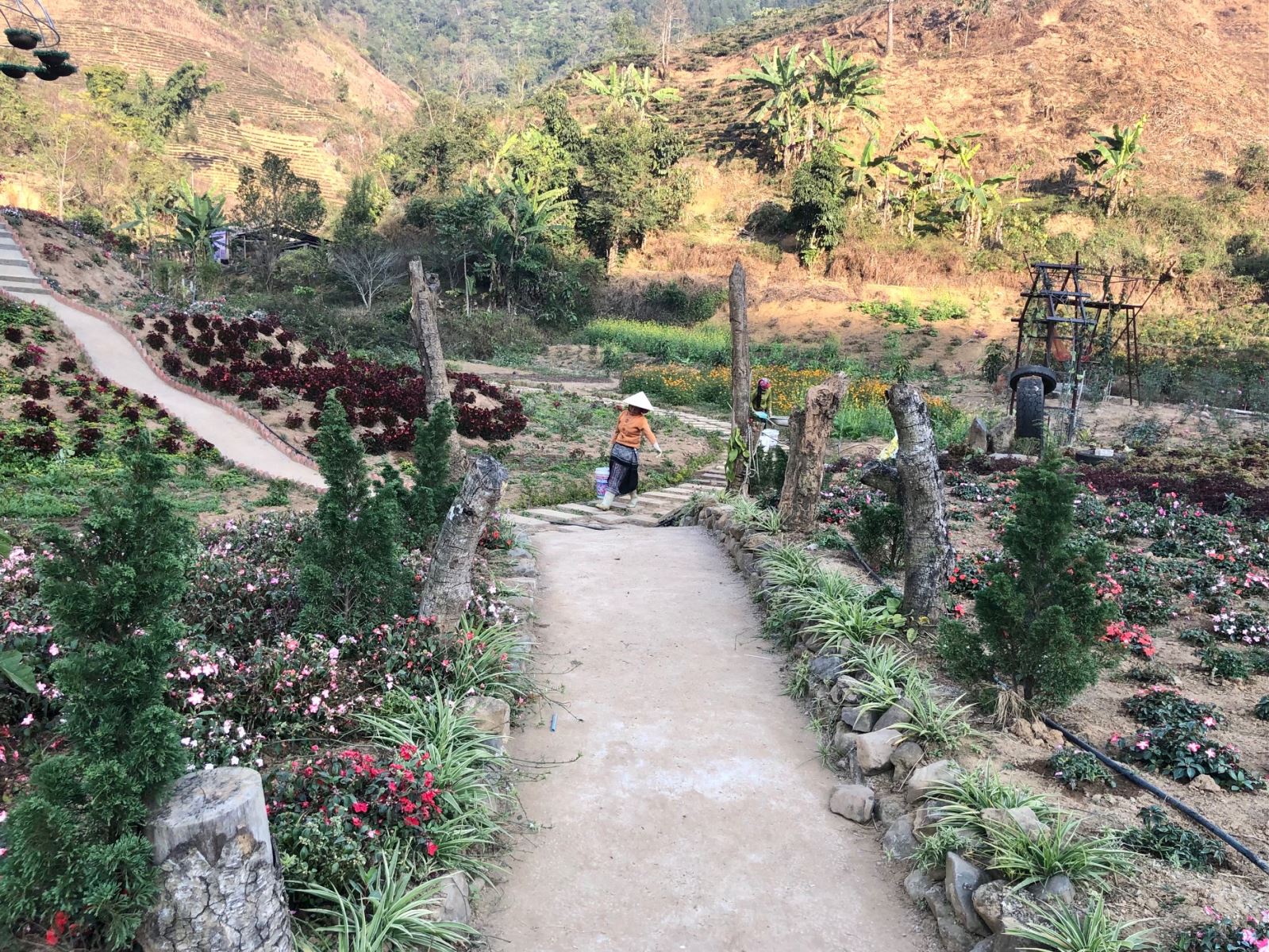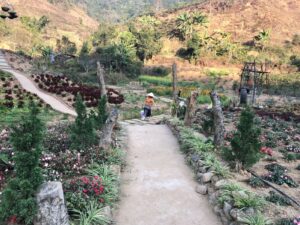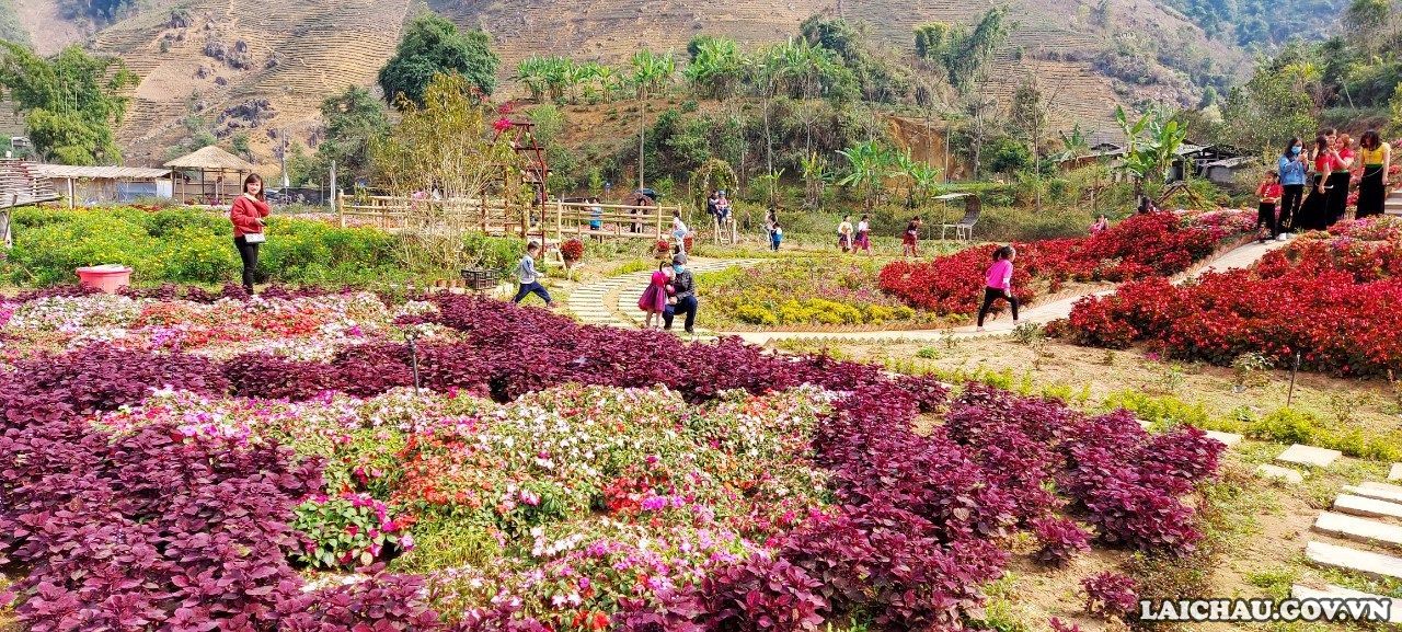 It can be said that Ban Tham is a destination in Lai Chau that converges many beautiful and extremely charming experiences. Throughout the valley are colorful flower gardens, planted and meticulously cared for. Here, flowers seem to bloom all year round with all kinds of periwinkles, vines, jade, begonias, carnations, etc., which are flexibly planted according to the season.
